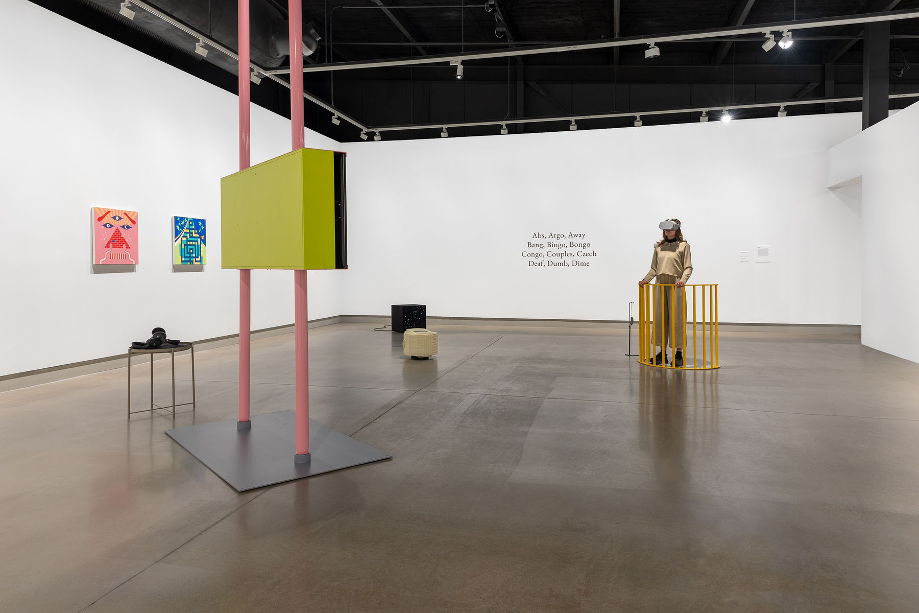 Three Dimensions is an exhibition showcasing the multidisciplinary art practice of Jennifer Marman and Daniel Borins. The show features three installations: Balancing Act, THX2020, and ABCD, which combine painting, sculpture, kinetics, interactivity, virtual reality, and video.